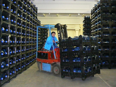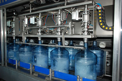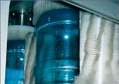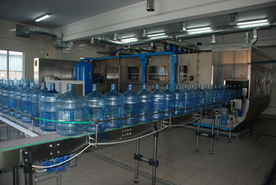 Высококачественный продукт подразумевает и высококачественную упаковку. Поэтому любой уважающий себя "водник" разливает воду в поликарбонатные, а не полиэтиленовые (ПЭТ) бутыли. Поликарбонатные бутыли химически инертны (как стекло), выдерживают серьезные механические нагрузки, легко моются и выдерживают нагрев до 150°С, поэтому допускают многократное использование. Это тем более хорошо, так как позволяет сохранить окружающую среду от загрязнения пластиковым мусором. С другой стороны, многоразовость требует тщательной подготовки бутылей к повторному использованию, иначе все преимущества многоразовой тары грозят обернуться недостатками. Поэтому, каждая бутыль до того, как ее наполнят водой, проверяется специальной установкой на герметичность, чтобы убедиться в отсутствии микротрещин. Кроме того, нам хотелось максимально исключить "человеческий фактор" в процессе подготовки бутылей. Именно поэтому в 2011 году мы приобрели одну из самых современных на сегодняшний день, полностью автоматическую машину для мойки и наполнения бутылей ARIS итальянской компании PROMEC. В этой машине каждый бутыль проходит шесть стадий мойки (см. схему):