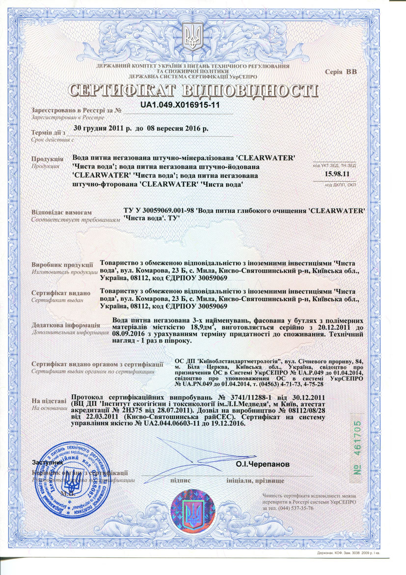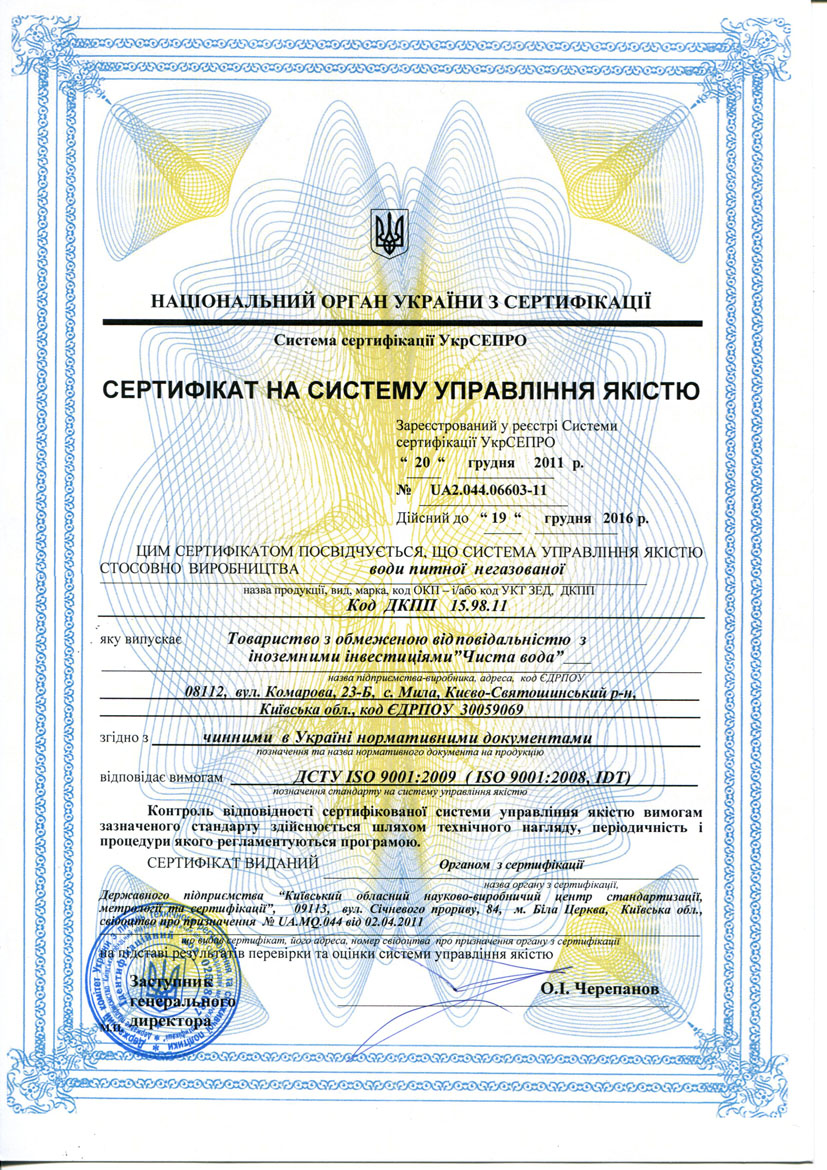 Сертификат на систему управления качеством ДСТУ ISO 9001-2009.